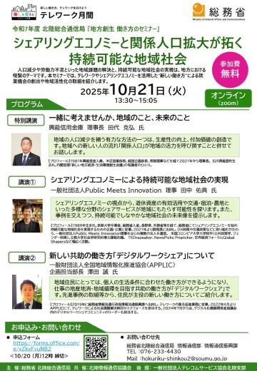 北陸総合通信局が主催する『地方創生 働き方のセミナー』を後援させていただきました。